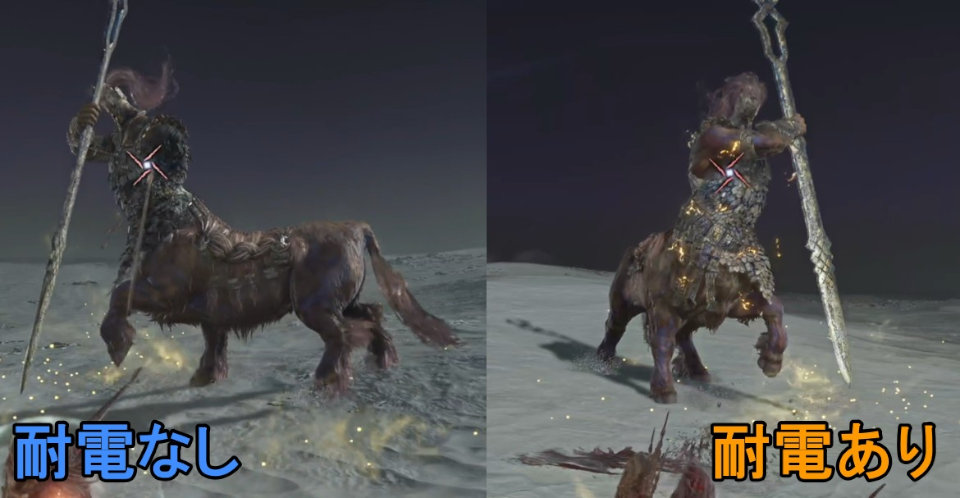 ただし、1度雷属性でキャンセルするとフルゴールが耐電状態になり、この状態では耐性強くなったことで1回の攻撃ではキャンセルできない。複数回攻撃を当てる必要がある。