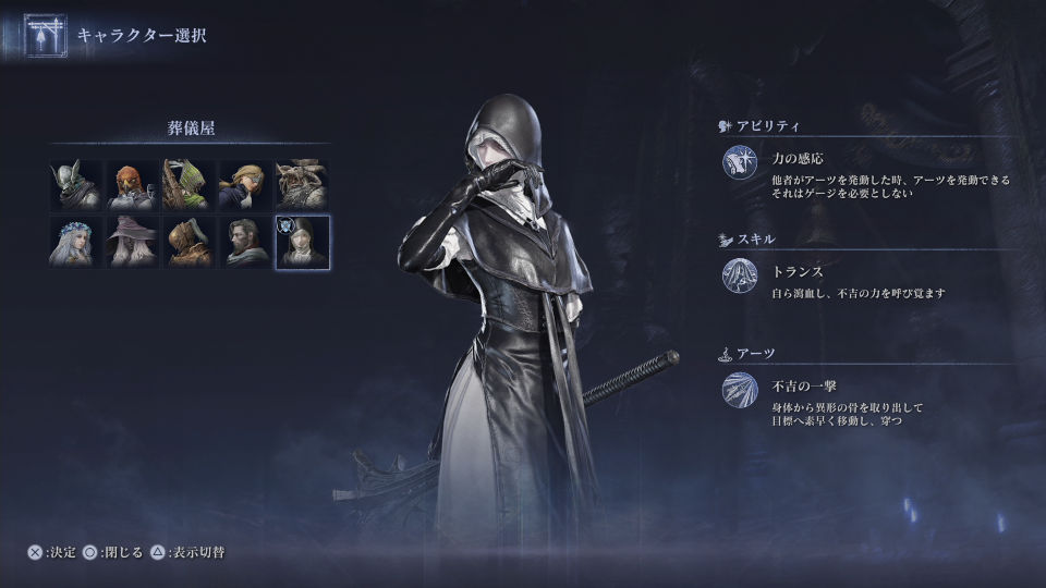 | 片眼鏡の革袋 | 青 | 【葬儀屋】祈祷を使用して、自身にほぞ効果発生時 物理攻撃力上昇 |